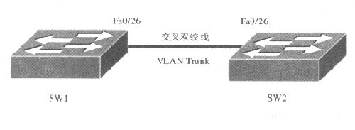 如下圖所示,用交叉網(wǎng)線把 SW1交換機(jī)的Fast Ethernet0/26端口和SW2交換機(jī)的Fast Ethernet0/26端口連接起來。