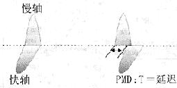 圖1 兩個(gè)偏振模不同的傳輸速度導(dǎo)致PMD 在單模光纖傳輸中,光波的基模含有兩個(gè)相互垂直的偏振態(tài)。理想光纖的幾何尺寸是均勻的,且沒有應(yīng)力,因而光波在這兩個(gè)相互垂直偏振態(tài)以完全相同的速度傳播,在光纖的另一端沒有任何延遲。然而,在實(shí)際的光纖中,兩個(gè)相互垂直的偏振模以不同的速度傳播,因而到達(dá)光纖另一端的時(shí)間也不同(圖1)。這兩個(gè)相互垂直的偏振模在單位長(zhǎng)度中的時(shí)間差,即是PMD,其單位為ps/√km。 PMD和色度色散對(duì)系統(tǒng)性能具有相同的影響:即引起脈沖展寬,從而限制了傳輸速率。然而,PMD比色度色散小幾個(gè)數(shù)量級(jí)。而且它僅在數(shù)字系統(tǒng)和具有高放大調(diào)頻模擬系統(tǒng)中采用一定的色散補(bǔ)償時(shí),才成為重要的考慮因素。此外,這一限制受傳輸方式、環(huán)境和安裝條件的影響。 與具有確定性的色度色散不同,任意一段光纖的PMD是一個(gè)服從Maxwllian分布的隨機(jī)變量。其瞬時(shí)PMD值隨波長(zhǎng)、時(shí)間、溫度、移動(dòng)和安裝條件的變化而變化,此外,研究表明長(zhǎng)距離光纖的PMD(真實(shí)情況)具有隨長(zhǎng)度平方根而變化的關(guān)系[1],因而PMD的單位是ps/vkm。 引起PMD的因素可以是內(nèi)在的(由制造過程所產(chǎn)生的纖芯或包層的不對(duì)稱性和玻璃表面的應(yīng)力)和外在的(外部應(yīng)力、彎曲和扭曲)。這些因素和距離結(jié)合在一起引起雙折射和模偶合,從而產(chǎn)生PMD。雙折射是指玻璃的折射率是沿軸向變化的。由于兩個(gè)偏振模的傳播速度不同,因而引起了接收信號(hào)的延遲。模偶合是指在兩個(gè)偏振模之間的能量傳遞而引起的脈沖擴(kuò)展和延遲。 三、對(duì)系統(tǒng)PMD的考慮
