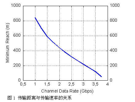 圖1是基于誤碼率小于10-12吉比特以太網聯(lián)接模型的傳輸距離與帶寬的關系曲線,光纖是500MHz.km,50/125vm多模光纖.可以看出,在2.5Gbps速率下傳輸距離可以達到300米;而在3.75Gbps速率下可以達到50m.并行光互連通過多根光線并行傳輸,可以在高比特率的速率下實現較遠距離的傳輸,.這就是為可采用并行光互連的一個原因. 并行光模塊和帶狀光纜 并行光互連通過并行光模塊和帶狀光纜來實現.并行光模塊是基于VCSEL陣列和PIN陣列,波長850nm,適合多模光纖50/125vm和62.5/125vm. 封裝上其電接口采用標準的 MegArray連接器,光接口采用標準的MTP/MPO帶狀光纜. 目前比較通用的并行光模塊有4路收發(fā)一體和12路收發(fā)分離模塊。