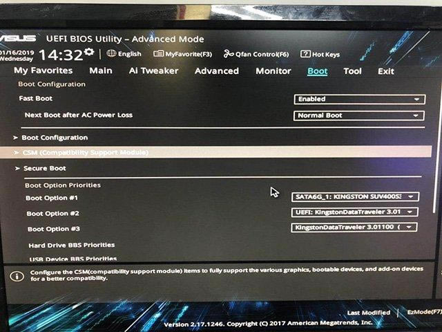 華碩新版的UEFI BIOS例如,當(dāng)電腦剛開(kāi)機(jī)時(shí),我們反復(fù)按下delete鍵,進(jìn)入華碩主板BIOS設(shè)置界面,我們按F進(jìn)入高級(jí)模式。  我們進(jìn)入Boot選項(xiàng),進(jìn)入CSM如下圖所示。