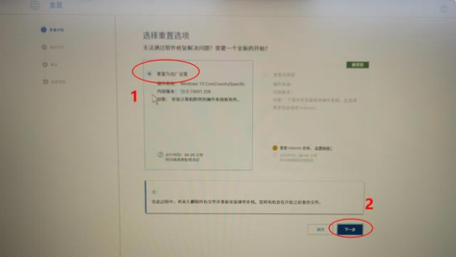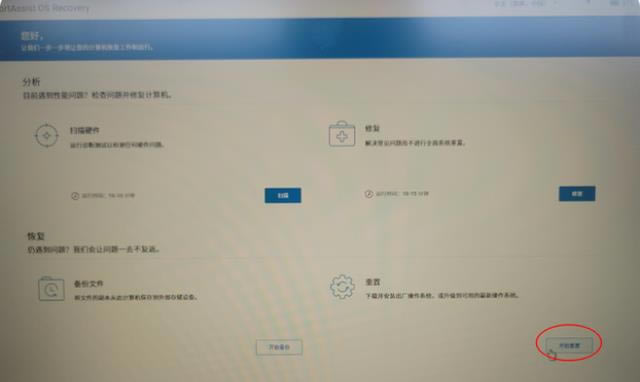 進(jìn)入還原界面后,選擇開始重置。