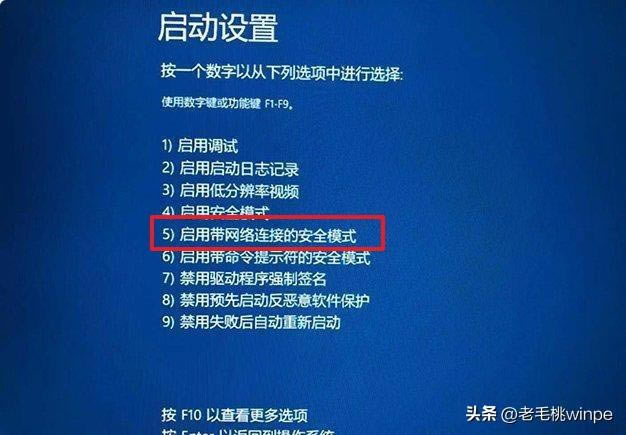 6、按下F5鍵(或數(shù)字5),即選擇啟用帶網(wǎng)絡(luò)連接的安全模式。