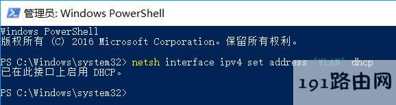 WLAN" dhcp ,意思是將"WLAN"的IPV4地址設(shè)置為"自動(dòng)獲取"