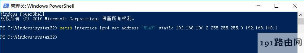WLAN" static 192.168.100.2 255.255.255.0 192.168.100.1,意思是將"WLAN"的IPV4地址設(shè)為192.168.100.2,子網(wǎng)掩碼設(shè)為255.255.255.0,默認(rèn)網(wǎng)關(guān)設(shè)為192.168.100.1。