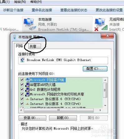 最簡單實用的win7開wifi方法介紹圖三 第二步:需要開啟本地網(wǎng)絡的共享,點擊你電腦桌面右下角的電腦圖標,打開網(wǎng)絡和共享中心,選擇更改適配器,選擇你聯(lián)通網(wǎng)絡的網(wǎng)絡,例如我的是本地連接(有些是寬帶連接),右鍵選擇屬性,彈出的框中就會有共享選項(如果沒有,請找到你自己的 設備管理器-->網(wǎng)絡適配器-->選中你聯(lián)通的網(wǎng)絡進行驅(qū)動更新,或者卸載重裝,電腦重啟),夠選中第一個點擊確定就可以了。