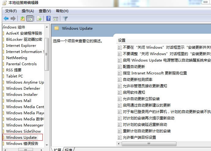 接下來(lái),我們?cè)诒镜亟M策略編輯器左邊依次打開(kāi)計(jì)算機(jī)配置-管理模板-Windows組件,雙擊打開(kāi)Windows Update進(jìn)行配置。