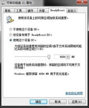 ReadyBoost是在VISTA就引入的一項加速系統(tǒng)的功能,特別是在內(nèi)存小于2GB的情況下,開啟ReadyBoost可以加快程序開啟、響應的速度。而在Windows 7系統(tǒng)中,ReadyBoost功能保留了下來,并進一步得到了優(yōu)化。