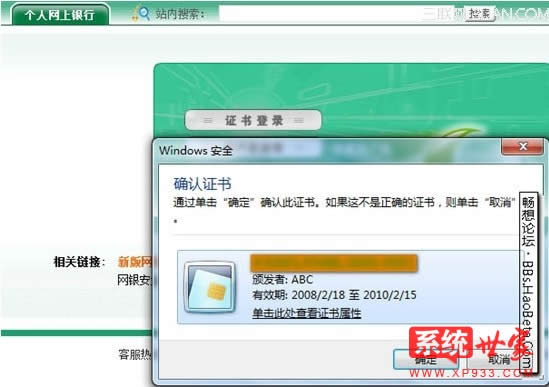 目前在Windows 7用 USBKey 登陸網(wǎng)銀在確認(rèn)證書后