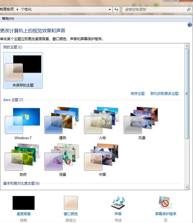 主題是Windows背景圖片、外觀顏色和聲音的組合。在Windows 7中,可以通過更換主題快捷 地更改電腦的桌面背景、窗口邊框顏色、聲咅和屏幕保護(hù)程序。具體操作步驟如下: