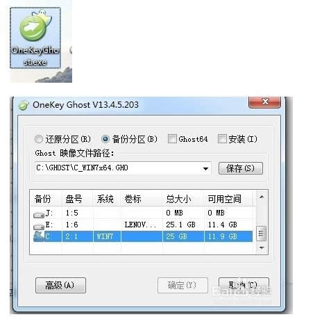 onekey備份系統(tǒng)盤:點擊“備份”----“C盤”----“確定”