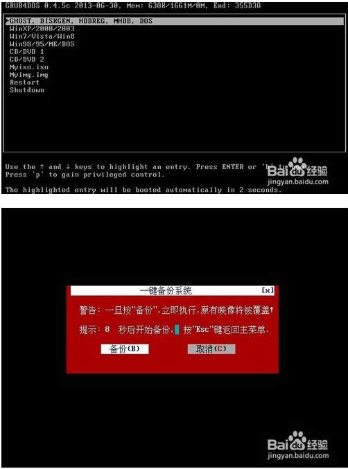 重啟后系統(tǒng)會自動跳轉(zhuǎn),并且自動備份你的系統(tǒng)文件,等待備份完成。
