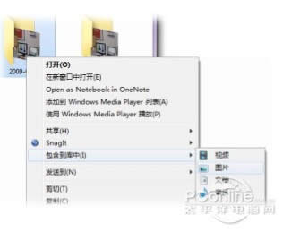 2. 右鍵單擊該文件夾,指向“包含在庫(kù)中”, 然后單擊“圖片”,F(xiàn)在,您的驅(qū)動(dòng)器中 的圖片已經(jīng)位于圖片庫(kù)中。