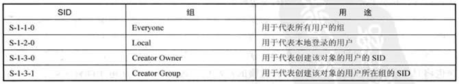 雖然SID是唯一的,不過依然有一弗通用SID,在Windows所有的系統(tǒng)中,這些S1D都是完全通用的。這些相同的S1D主要是為了方便管理,例如,下面列出了一些比較常見的通用SID,其他常見的通用S]D請參考微軟知識庫中的文章:http://siipport.microsoft.com/kb/243330.
