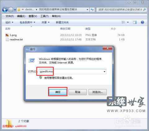 在打開的運行對話框里面輸入gpedit.msc,然后點下面的確定按鈕執(zhí)行g(shù)pedit.msc程序