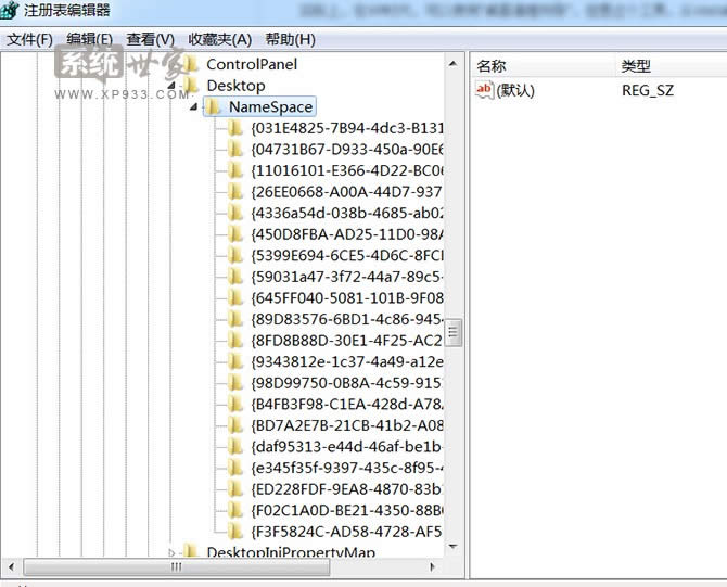 接下來(lái),一項(xiàng)一項(xiàng)的刪除NameSpace里面的項(xiàng),每刪除一個(gè),前先記好這一項(xiàng)的名字,刪除一項(xiàng)后,在桌面上刷新一下。假如刪除{3D3DBDD2- DD4D-B157-4264-0B0D4DD6BD45}這一項(xiàng)后,桌面上的那幾個(gè)圖標(biāo)沒(méi)有了的話,那就用記事本編輯剛才導(dǎo)出的那個(gè)REG文件,刪掉里面的