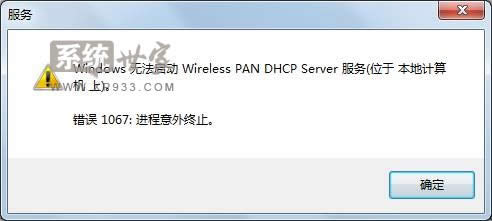 Windows 7系統(tǒng)使用無線時提示“windows無法啟動wireless pan dhcp server服務(wù)"(位于本地計算機(jī)上)。錯誤1067:進(jìn)程意外終止。如下圖所示: