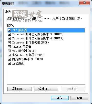 4. 在共享頁面點擊設(shè)置,出現(xiàn)高級設(shè)置,并勾選所有服務(wù)后確定,如下圖所示: