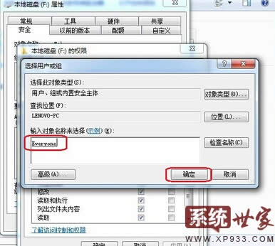 在選擇用戶或組的界面中,在輸入對象名稱來選擇中我們就可以看到win7 everyone權(quán)限了,我們直接單擊確定就OK。