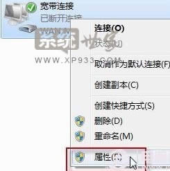 二:之后我們將找到寬帶連接,然后我在剛才設(shè)立的連接圖標(biāo)上,右擊鼠標(biāo),選擇創(chuàng)建快捷方式,之后會(huì)提示你是否把快捷方式放在桌面選“是”,再次右擊鼠標(biāo)選擇屬性,如下圖: