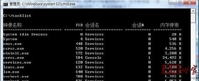 2、在打開的命令提示符窗口中然后輸入:tasklist可以查看到現(xiàn)在所有進程。