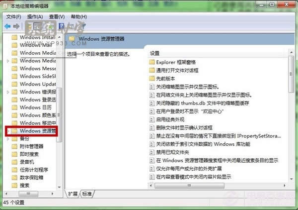 第二步、在“本地組策略編輯器”窗口,在左側(cè),依次找到“用戶配置”-“管理模板”-“Windows 組件”-“Windows 資源管理器”。