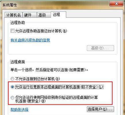 3、當(dāng)開啟“遠(yuǎn)程系統(tǒng)屬性”后,就可看見“允許運行任意版本遠(yuǎn)程桌面的計算機(jī)連接”以及“僅允許運行使用網(wǎng)絡(luò)級別身份驗證的遠(yuǎn)程桌面的計算機(jī)連接”兩項,用戶可根據(jù)自己的需求勾選這兩項里面的任意一項,最后點擊“應(yīng)用——確定”保存即可。