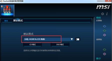 4、在默認(rèn)格式里,將其切換到“16位,44100hz(cd音質(zhì))”,更改操作完成后,用戶可稍微感受一下,是否覺得噪音的感覺降低了很多了呢?在默認(rèn)格式中,有眾多的選項(xiàng),但越到后面的選項(xiàng),相應(yīng)的聲卡要求是比較嚴(yán)重的,聲卡達(dá)不到要求,噪音就會(huì)越來越嚴(yán)重。所以這一項(xiàng)要根據(jù)聲卡的情況來具體的選擇。