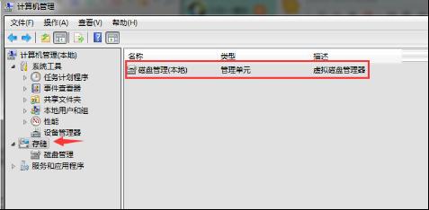 2、在出現(xiàn)的“計算機管理”菜單中,選擇“存儲”下面的“磁盤管理”鍵值。