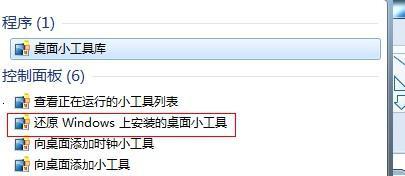 2、在顯示的相關(guān)結(jié)果中選定“還原Windows上安裝的桌面小工具”的選項(xiàng),按回車確定后就能在復(fù)原小工具的功能了。