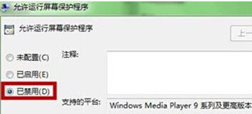 3、在右側(cè)窗口中雙擊“允許允許屏幕保護程序”的選項,在彈出來的設置窗口中將當前的設置更改為“已禁用”即可。