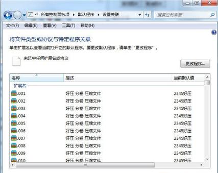 4、打開后就可看到文件格式列表了,找到你想要修改的文件格式重新關(guān)聯(lián)了。
