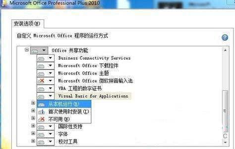 5、在展開的“Office 共享功能”項(xiàng)中看到“VBA工程數(shù)字證書”和“Visual Basic For Applications”,選中后,點(diǎn)擊繼續(xù)按鈕,直到安裝結(jié)束即可。