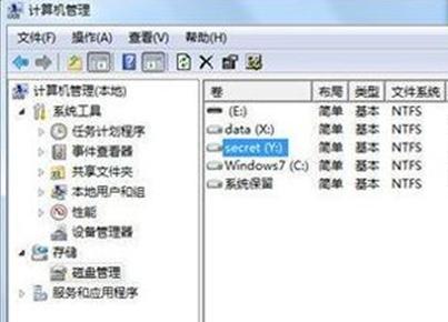 4、選擇 “是” 以后,原本Y盤的驅(qū)動(dòng)器號(hào)已經(jīng)沒有了,只剩下卷標(biāo)“ secret ”,此時(shí)在“計(jì)算機(jī)”文件夾下已看不到Y(jié)盤了。這樣就算是徹底藏起來了。