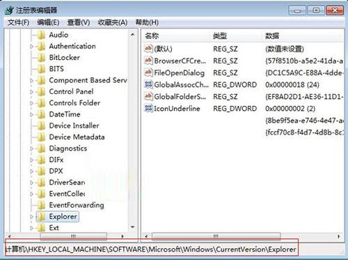 2、在打開的注冊表編輯器中依次在左側(cè)窗口中點擊HKKEY_LOCAL_MACHINE--SOFTWARE--Microsoft--Windows--CurrentVersion--Explorer。