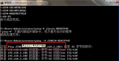 3、然后在命令窗口輸入“ping ―4 需要查找的計(jì)算機(jī)名稱”,按Enter鍵就會(huì)彈出這臺(tái)需要查找的計(jì)算機(jī)的IP地址了。