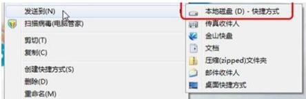 2、比如我們常需將文件發(fā)送到本地磁盤D盤中,那么就把本地磁盤D添加到 “發(fā)送到”菜單中去,添加方法:右擊“本地磁盤D”,選擇“創(chuàng)建快捷方式”,然后將桌面上的 “本地磁盤D”的快捷方式復(fù)制到“sendto”文件中即可,這樣右擊某一文件時,就會發(fā)現(xiàn)發(fā)送到菜單中就會有了“本地磁盤D-快捷方式engine.dll”這一選項了。