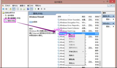 2、在彈出的“組件服務”中點擊左側(cè)窗口中的服務,在出現(xiàn)的右側(cè)服務列表找到windows firewall,然后右鍵單擊選擇“啟用”即可。