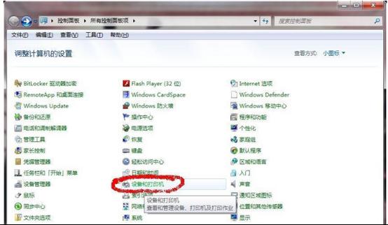 1.打開(kāi)“控制面板”,點(diǎn)擊控制面板里的“設(shè)備與打印機(jī)”選項(xiàng),如圖示: