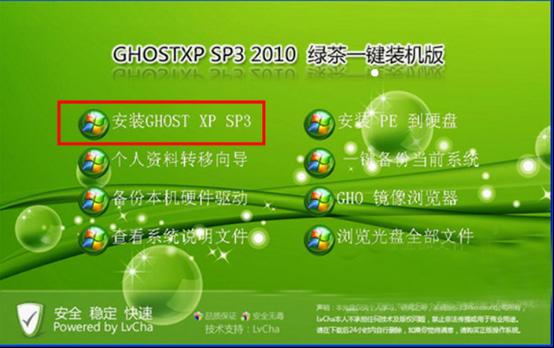 2.選擇 “安裝GHOST XP SP3”就可以默認(rèn)安裝了。