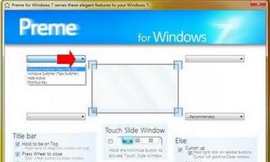 設(shè)置Preme for Windows 7后,將鼠標移動到桌面四個邊角之一,便激活功能鍵。還可自定義任何桌面快捷鍵,點擊Preme for Windows 7右下角便可實現(xiàn)自定義快捷鍵,用戶可根據(jù)自己的習慣來定義桌面快捷鍵,比如按“Ctrl+D” 組合鍵顯示桌面, 按“Win+E” 組合鍵打開我的電腦等等。點擊設(shè)置左上角則可實現(xiàn)切換程序,非常方便用戶使用,有興趣的用戶請試試吧。
