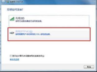 2、Win7系統(tǒng)會(huì)識(shí)別出用戶目前的網(wǎng)絡(luò)環(huán)境,這里選擇“寬帶(PPPOE)”。