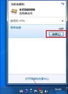 5、以后需連接時(shí),只需單擊Win7右下角的“網(wǎng)絡(luò)”圖標(biāo)即可看到建立好的寬帶連接,點(diǎn)擊“連接”就可以了,非常方便。