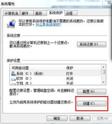 3、檢查是否沒有設置還原點的原因,如果是的話,點擊創(chuàng)建即可。