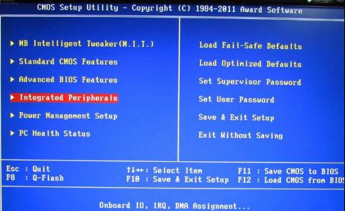 4、重啟電腦時,連續(xù)按DEL,進入 BIOS ,在“Integrated Peripherals”頁面中。