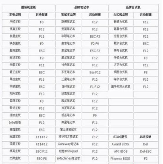 2、U盤啟動(dòng)時(shí),不同品牌的電腦主板BIOS啟動(dòng)的快捷方法也有很多不同的,幾種不同品牌常用啟動(dòng)熱鍵如下圖所示;