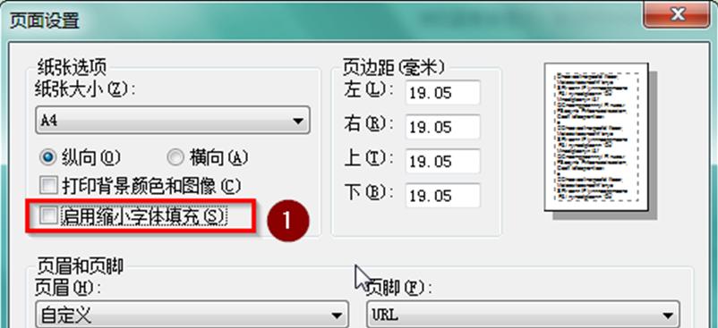 2、彈出“頁面設(shè)置”窗口,勾選“啟用收縮到紙張大小(S)”,點擊“確定”保存即可。