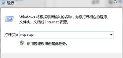 2、在彈出的“運(yùn)行”窗口中輸入“ncpa.cpl”命令后按回車(chē),或點(diǎn)擊確定按鈕。