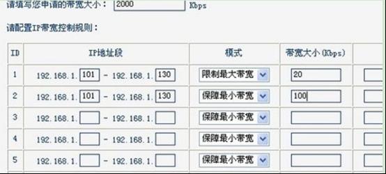 4、開始設(shè)置網(wǎng)速:首先填寫IP地址段,通過剛才查看“DHCP服務(wù)器”選項,我們了解到了可供上網(wǎng)總的IP地址段和已經(jīng)使用路由器上網(wǎng)的IP地址,想要限制某段的IP地址只需要填寫起始和結(jié)束的位置即可,如果想要限制單個,填寫相同的起始和結(jié)束位置即可。