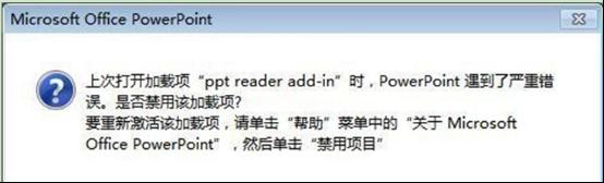 | Windows 7,中文名稱視窗7,是由微軟公司(Microsoft)開發(fā)的操作系統(tǒng),內(nèi)核版本號(hào)為Windows NT 6.1。Windows 7可供家庭及商業(yè)工作環(huán)境:筆記本電腦 、平板電腦 、多媒體中心等使用。Windows 7可供選擇的版本有:入門版(Starter)、家庭普通版(Home Basic)、家庭高級(jí)版(Home Premium)、專業(yè)版(Professional)、企業(yè)版(Enterprise)(非零售)、旗艦版(Ultimate)。 PPT軟件辦公族用戶常用戶來(lái)做演示文稿,但在使用PPT過(guò)程中,有一用戶戶遇到了“PowerPoint 發(fā)現(xiàn)無(wú)法更正的錯(cuò)誤。打開ppt深度技術(shù)Win7系統(tǒng)彈出“PPT發(fā)現(xiàn)無(wú)法更正的錯(cuò)誤”如何解決?現(xiàn)小編給大家作出如下解析。1、重啟電腦再運(yùn)行PowerPoint 2003,此時(shí)會(huì)又提示:上次打開加載項(xiàng)“ppt reader add-in”時(shí),PowerPoint遇到了嚴(yán)重錯(cuò)誤。是否禁用該加載項(xiàng)? 2、此時(shí)一般需要重新激活該加載項(xiàng),請(qǐng)單擊“幫助” 菜單中的“關(guān)于 Microsoft Office PowerPoint”。 3、然后單擊“禁用項(xiàng)目”,點(diǎn)擊“是”,PowerPoint終于運(yùn)行了!解決方法就是這么簡(jiǎn)單。 以上就是關(guān)于打開ppt深度技術(shù)Win7系統(tǒng)彈出“PPT發(fā)現(xiàn)無(wú)法更正的錯(cuò)誤”如何解決的介紹了,有遇到此問(wèn)題的用戶不妨來(lái)看看的上面的解決方法吧。 windows 7 的設(shè)計(jì)主要圍繞五個(gè)重點(diǎn)——針對(duì)筆記本電腦的特有設(shè)計(jì);基于應(yīng)用服務(wù)的設(shè)計(jì);用戶的個(gè)性化;視聽(tīng)娛樂(lè)的優(yōu)化;用戶易用性的新引擎。 跳躍列表,系統(tǒng)故障快速修復(fù)等,這些新功能令Windows 7成為最易用的Windows。 |
