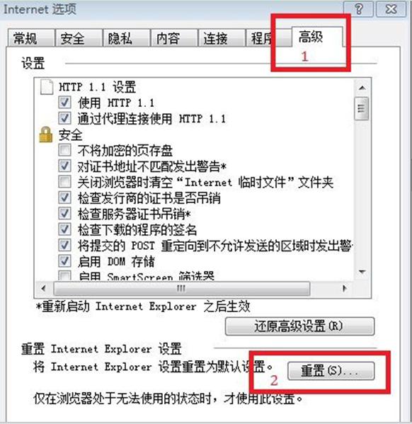 方法二:重置IE瀏覽器